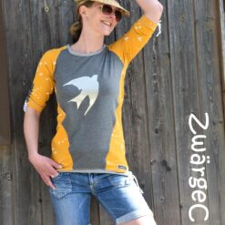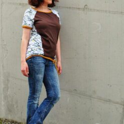 Das Tee ist die ideale Option für warme Sommertage aus Jersey genäht, jedoch hat es auch eine langarm Version im Ebook enthalten wenn es etwas kühler wird.