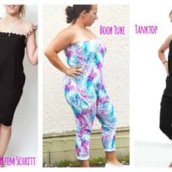Natürlich gibt es hier wieder einige Variationsmöglichkeiten wie z.B. eine T-Shirt Vario mit V-Ausschnitt, Tanktop oder ganz sommerlich als Boob Tube für den Urlaub am Meer 🙂