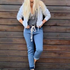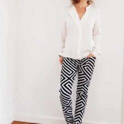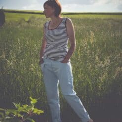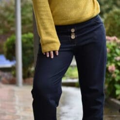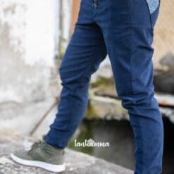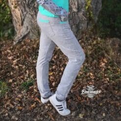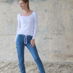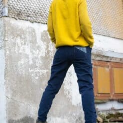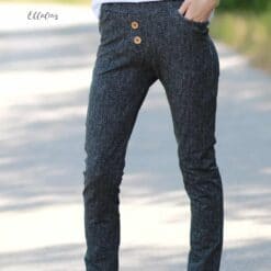 Die Hosen Mamee und Dadee sind die Erwachsenen Versionen der Kidee und Teenee Hosen! Die Mam*ee ist eine lockere Buxe in gerader Form für Sweat-Trikot Stoff oder Webware mit Stretch-Anteil (Elasthan). Diese Hose ist ideal für Stretch Jeans oder Stretch Chino Stoff geeignet. Gradiert ist sie in den Grössen XS (34) bis 3XL ((50/52). Sie hat viele Extras, wie zum Beispiel den Biker-Biesen Knie Einsatz, eine ‚fake’ Knopfleiste oder die seitlichen Cargo Taschen. Zudem kann sie im Sommer auch als Shorts genäht werden. In der Anleitung findest du auch ein kurzes Tutorial für einen Paperbag-Bund. Da diese Hose ohne Knöpfe oder Reissverschluss genäht wird, ist es wichtig einen Stoff mit etwas Elasthan zu wählen. Dieses Schnittmuster ist auch für Anfänger geeignet.