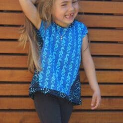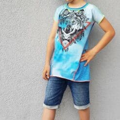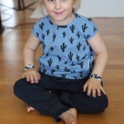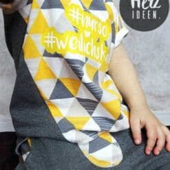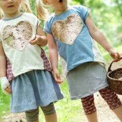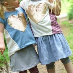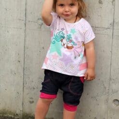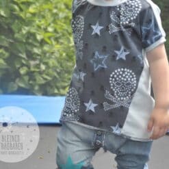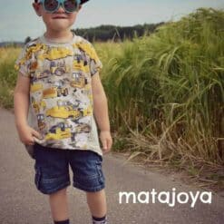 Das eesy Tee ist ein ganz einfacher Schnitt, der ratzfatz genäht und auch für Anfänger geeignet ist. Aus nur 2 Teilen kannst du blitzschnell ein cooles Sommertop nähen, welches Dank der speziellen Schnittführung ein richtiger Hingucker ist! Das eesy Tee ist eine Vereinigung von 2 Nipnaps Schnitten; die Ärmel vom „eesy Dress“ zusammen mit dem „Tee“, welches separate Raglanärmel hat! In der bebilderten Nähanleitung findest du auch ein kurzes Tutorial für „faule Bündchen“ somit brauchst du lediglich 2 Stücke Jersey und eine Nähmaschine um dieses coole Tee zu nähen