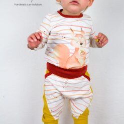 Gradiert von Grösse 56-116 für die Kleinen, sowie auch in 122-170 für Teens, deckt dieser Schnitt alle Grössen deiner Kids ab. Am besten fallen die Pocket*ee aus Sweat oder French Terry, jedoch sieht ein stretchy Jeans Jersey auch supercool aus. Die Tasche wird am besten aus Jersey oder einem leichtem Stoff aufgenäht. Natürlich gibt es auch eine gekürzte Variante für die warmen Tage.