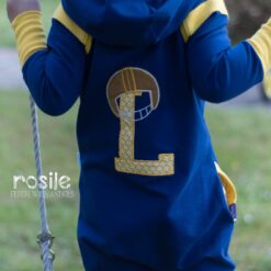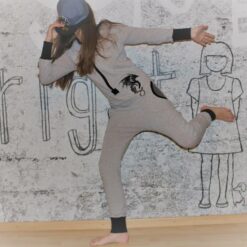 Romp*ee ist ein slimfit harem Romper…. er ist schmal geschnitten mit langen Bündchen an Armen und Beinen. Man kann ihn mit Kapuze oder einfach Bündchen abschliessen, zudem gibt’s folgende Variationen: