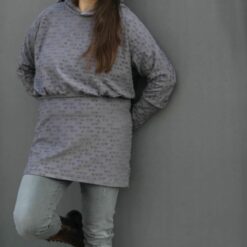 Die Youmee passt allen Frauen, you and me 🙂 Ein lässiger Schnitt, der als Longpulli oder auch als schickes Kleid getragen werden kann. In den Grössen 32/34 – 52/54 passt es für viele Körperformen und zaubert eine schöne Figur dank der raffinierten Unterteilung. Ein Mix aus Oversize und Figurbetont mit vielen Add-ons, wie zB. ein schöner Kragen, eine sportliche Kapuze, ein Kragenausschnitt-Beleg oder ein einfaches Bündchen mit der Option T-Shirt, 3/4 Ärmel oder langen Bündchen verleihen der Youmee immer einen anderen Look. Der Schnitt ist auch für Anfänger geeignet. Das Schnittmuster steht in der Zip Datei in folgenden Varianten zur Verfügung: A4 PDF randlos, A4 PDF mit Schneidelinien (beide mit Ebenen), A0 in Ebenen, Beamerdatei für helle Stoffe und Beamerdatei für dunkle Stoffe, ebenfalls in Ebenen.