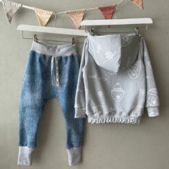 Hejhenri Bio French Terry “Eisbärenbande” eisblau strukturiert weiss