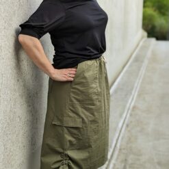 Die Loos*ees sind super bequeme loose fit Hosen mit weiten Beinen und vielen Extras. Gradiert in Ladies Grössen von 34-54. Ein Hosenstoff mit etwas Stretch (Elastan), wie zum Beispiel ein stretch Jeans Stoff oder Twill Webware mit einem kleinen Anteil von Elasthan wäre super geeignet zum Nähen der Loos*ees. Mit vielen Extras kann die Loos*ee das ganze Jahr durch genäht werden. Eine seitliche Cargotasche bringt einen modernen Hingucker. Eine schicke Passé am Rückteil sorgt für einen coolen Jeanslook. Ein seitlicher Schlitz oder ein Saum mit Gummizug bietet ein paar Variationen zum Saum. Rock den Cargo Look, indem du die Loos*ee als supercoolen Rock in 7/8 Länge nähst. Seitliche Raffungen bringen einen extra Hingucker und liegen voll im Trend. Ebenso kannst du die Loos*ee als coole Shorts nähen. Dieses Schnittmuster ist auch für Anfänger geeignet und ist wirklich ganz fix genäht! Das Ebook enthält eine ausführlich bebilderte Nähanleitung inklusive das Schnittmuster in A4, A0, sowie auch 2 Beamerdateien für normalen und dunklen Stoff mit Ebenen. Auf dem Nipnaps Blog findest du immer tolle Tipps, Tricks und Videos zum Nähen der Schnitte und deine Kleidung aufzupeppen.