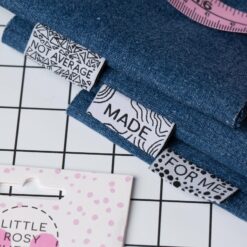 The 2/3cm size is perfect sewn into a seam. This label is designed with a centre fold and can be sewn in to a garment, bag, craft project or quilt. They can be added to the outside or inside of the garment.