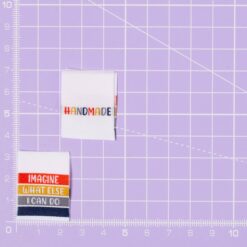 ‚HANDMADE – IMAGINE WHAT ELSE I CAN DO‘ is a double sided label with HANDMDE on one side and IMAGINE WHAT ELSE I CAN DO on the other.