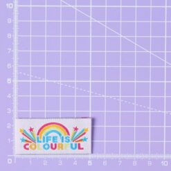 ‚Life is Colourful‘ features a colourful rainbow and shooting star design on a white background