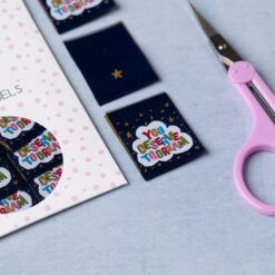 I love this label – ‚YOU DESERVE TO DREAM‘ is woven in colourful letters on to a white cloud in a night sky. Such a great message for all ages!
