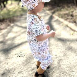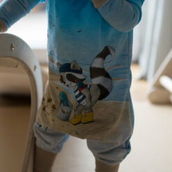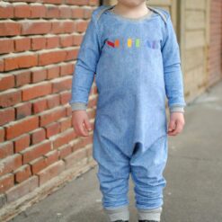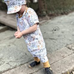 Der Jump*ee ist ratzfatz aus 2 Teilen, einen Vorder- und einen Hinterteil genäht, es hat keine Knöpfe oder sonst kompliziertes, somit ist es auch für jeden Anfänger easy-peasy genäht. Eure Kleinen schlüpfen ganz einfach durch die Halsöffnung, die Dank des amerikanischen Kragens super dehnbar ist und ganz schnell an und ausgezogen ist.